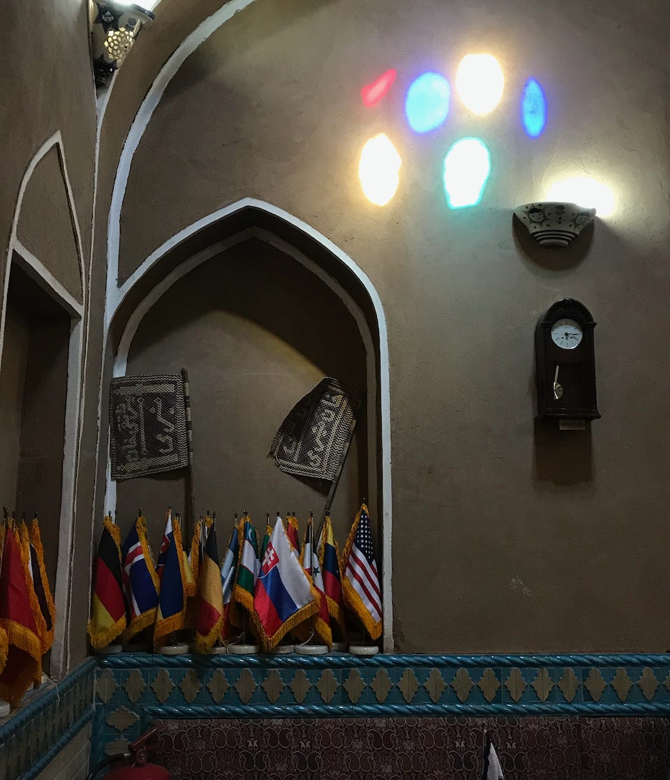 I return to these photos with feelings of sadness at the thought that some of these places are or may soon be destroyed by a hideously counter-productive bombing campaign which further punishes a proud people already brutalized by the Iranian regime. But also with hopefulness, as I am reminded of the tiny details like the American flag displayed alongside the other flags of the world in a Yazd hotel, or the fact that Orwell’s 1984 was one of most popular books being sold on Tehran’s street corners. I think about the warmth of the complete strangers and extended family I met in Iran and the fundamental goodness of humans, which, despite all the darkness in history, is a fact of life that I consider immutable.