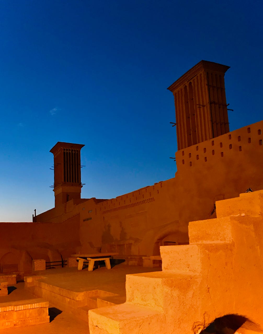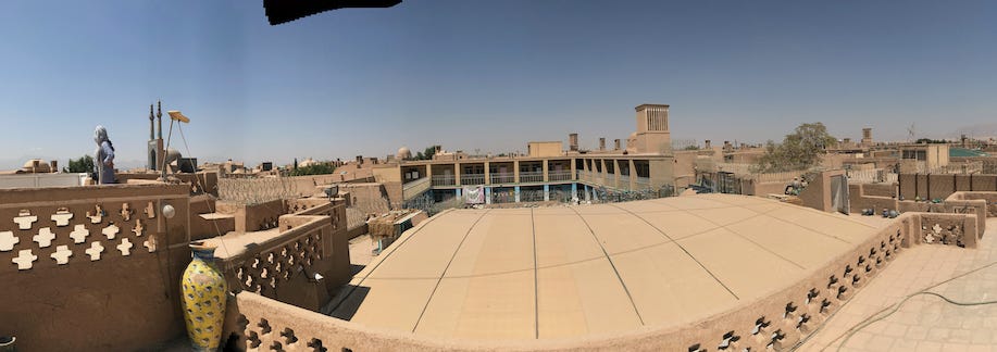 Finally, we wrapped up our roadtrip in Yazd, a city that Marco Polo visited and seems to have greatly enjoyed. I don’t think I’ve been anywhere besides possibly Oxford or Sienna that is so well-preserved as a premodern cultural site. The architecture both in the city and in the extremely arid region around it still preserves the ancient Persian architecture of qanats and Windcatcher towers designed to channel water and cool air through one of the hottest places on earth.