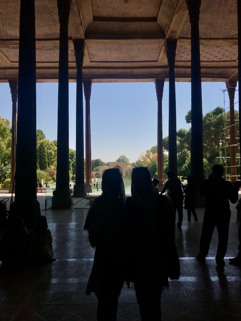Paintings throughout the complex (some of which were damaged in recent bombing) show vivid scenes of Abbas the Great and his son doing such things as entertaining the Mughal Emperor, defeating the Ottomans in battle, and drinking copious amounts of wine.